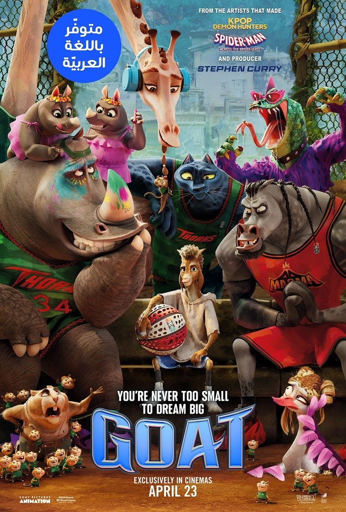 From Sony Pictures Animation, the studio behind Spider-ManTM: Across the Spider-Verse and the artists that made KPop Demon Hunters, comes GOAT, an original action-comedy set in an all-animal world. The story follows Will, a small goat with big dreams who gets a once-in-a-lifetime shot to join the pros and play roarball – a high-intensity, co-ed, full-contact sport dominated by the fastest, fiercest animals in the world. Will’s new teammates aren’t thrilled about having a little goat on their roster, but Will is determined to revolutionize the sport and prove once and for all that “smalls can ball!”
